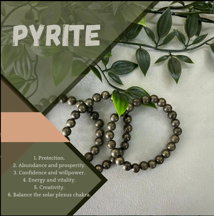 Wearing a pyrite bracelet is often associated with a range of metaphysical and healing benefits. Here are some of the key benefits attributed to Natural pyrite bracelets: