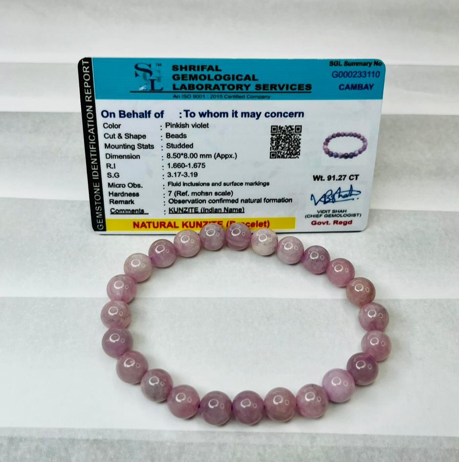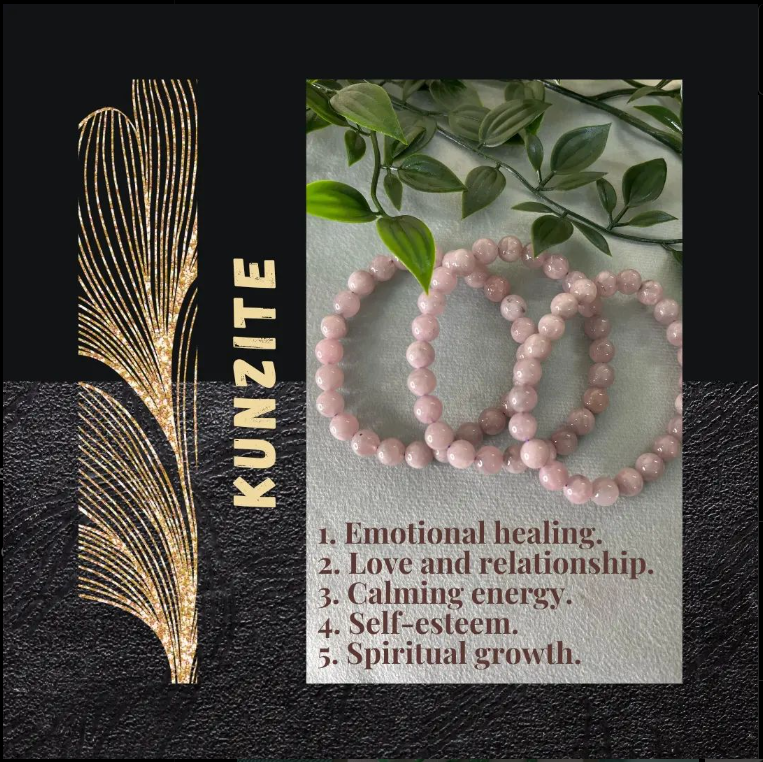 Wearing a kunzite bracelet is often associated with a range of metaphysical and healing benefits. Here are some of the key benefits attributed to Kunzite bracelets: