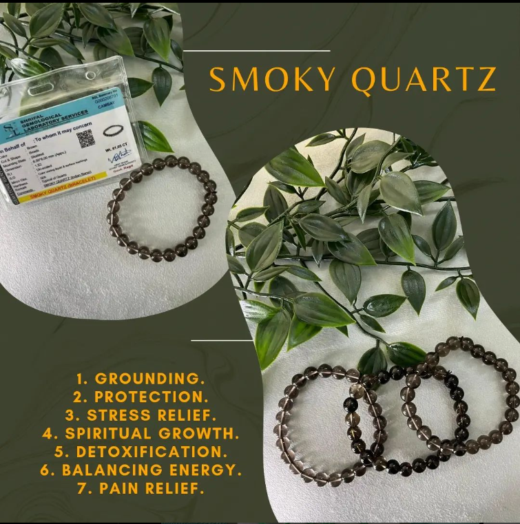 Wearing a smoky quartz bracelet is often associated with a range of metaphysical and healing benefits. Here are some of the key benefits attributed to Smoky quartz bracelets: